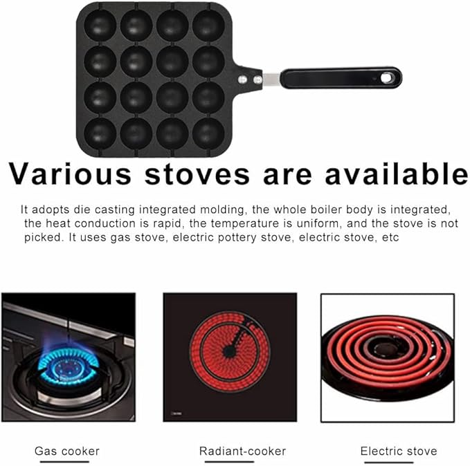 Non-baton Fonte d'aluminium 16 Trous Takoyaki Grill Pan Plaque De Cuisson Pooles Frire Plaque De Moule De Cuisson pour Pancakes Ronds