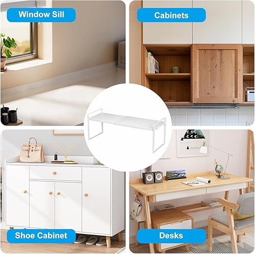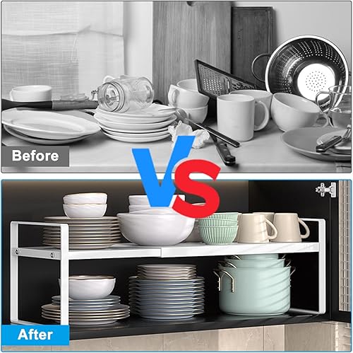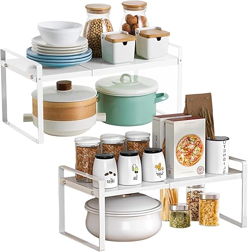 AKOLAFE Lo de 2 Rangement Placard Cuisine Extensible de 35 à 65 cm Organisateur Cuisine En Métal Etagere Rangement Cuisine pour la Salle de Bain, le Bureau, le Plan de Travail ou le Buffet (Blanc)