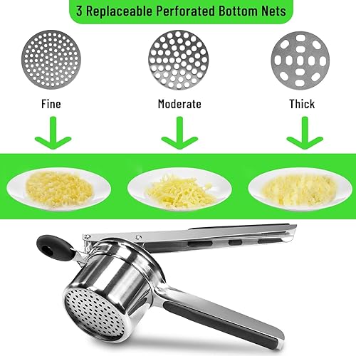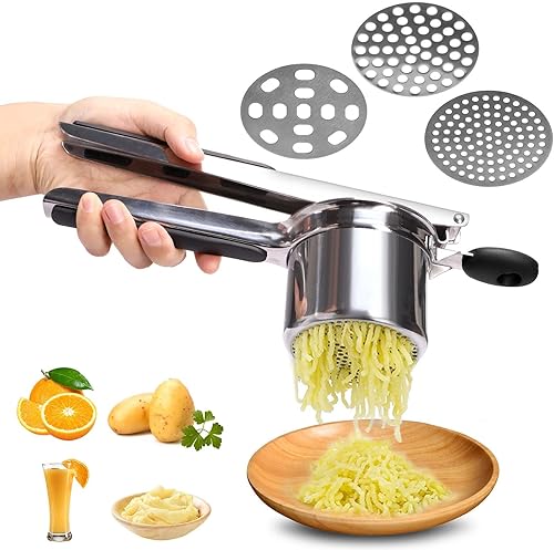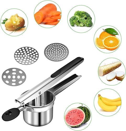Presse-purée,Presse-nouilles au jus de citron et de melon,avec 3 Disques Interchangeables,Professionnel Presse Purée Manuel en Acier Inoxydable,pour Fruits,légumes,Aliments pour bébés
