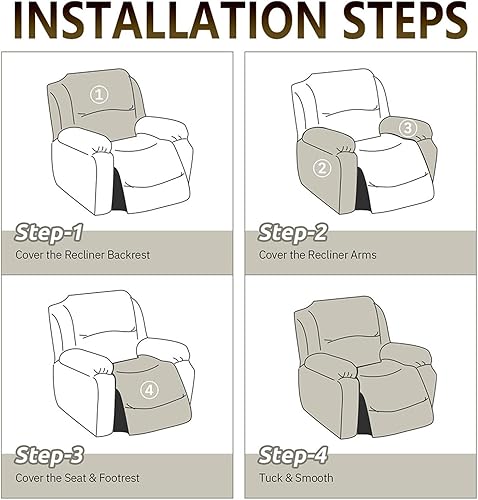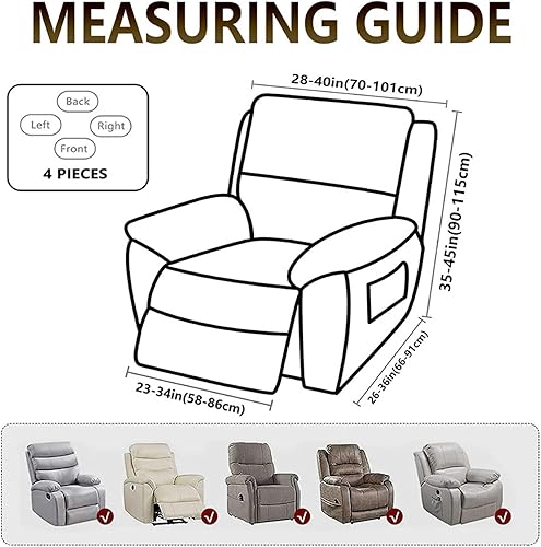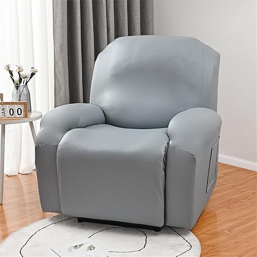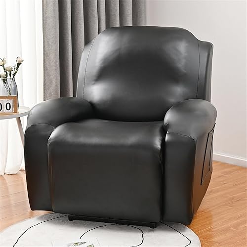Hearda Housse de Fauteuil Inclinable Extensible, Cuir PU Housse de Fauteuil 1 Place Relax Housses de Fauteuils 4 Pièces avec Poches Latérales Housse de Canapé Relax Inclinable Amovible (Noir)