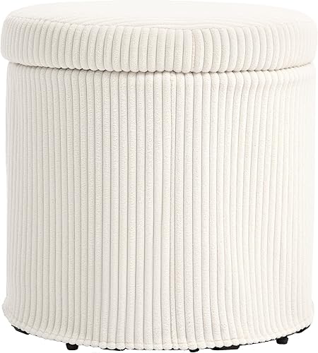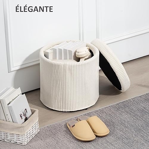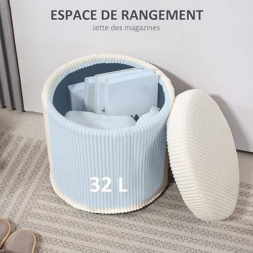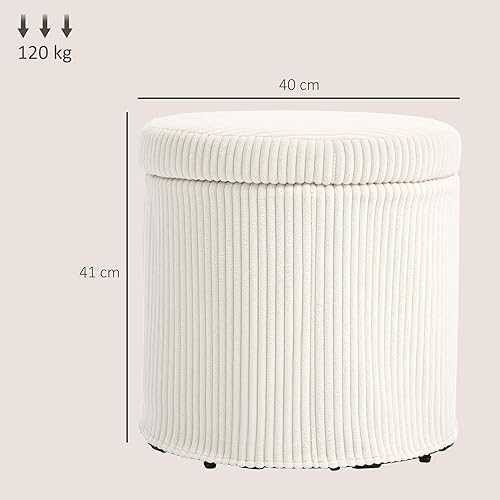 HOMCOM Pouf Rangement 32 L Pouf Salon Tabouret de Coiffeuse en Velours côtelé avec Couvercle et Pieds en Acier, Repose Pied Rond jusqu'à 120 kg, pour Couloir, Chambre, Salon, Beige