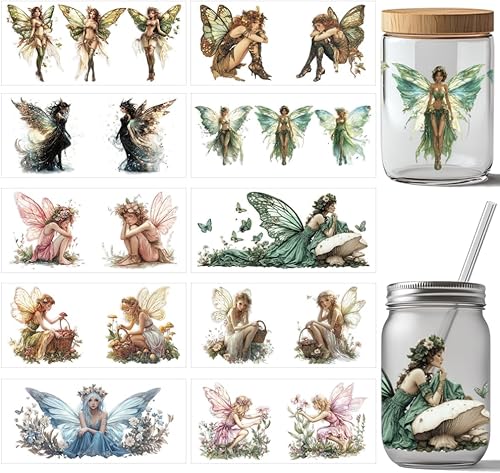 arricraft 10 autocollant de Transfert pour Enveloppe de Tasse Elf UV DTF 10 style de Papier Transfert Magique de Fée Autocollants à Frotter en PVC pour gobelets en verre de 16OZ 24x11cm