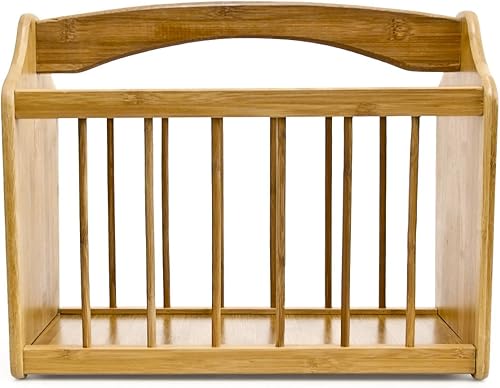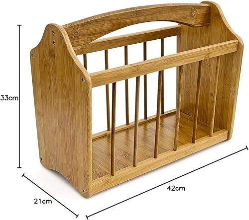 Relaxdays 10015644 Porte-revues en bambou avec poignée Présentoir à journaux HxlxP: 33 x 42 x 21 cm, nature, Marron Clair