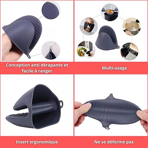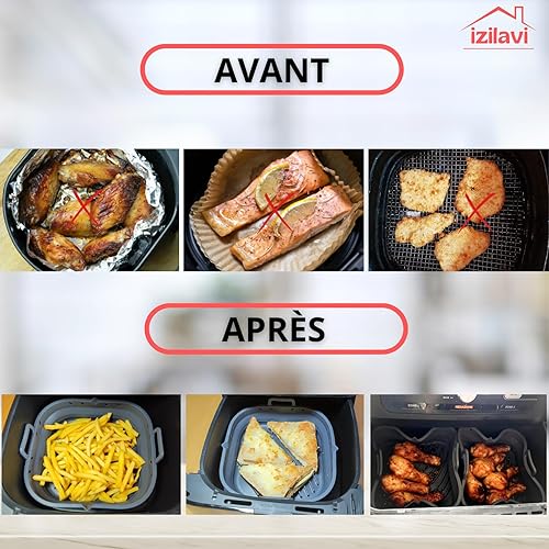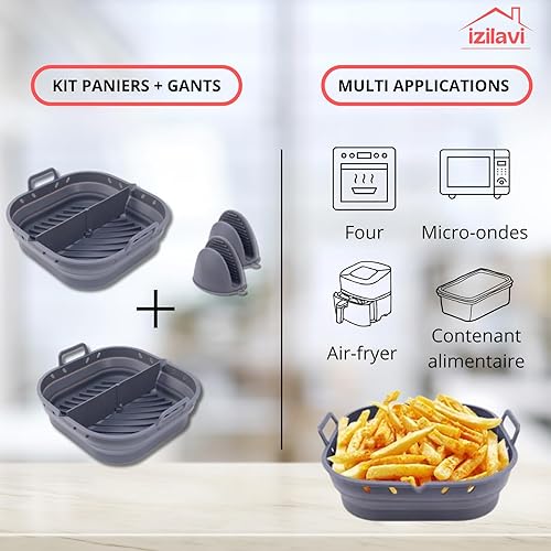 IZILAVI Lot de 2 Moules Air Fryer Silicone Alimentaire avec Séparateur, Double Compartiment, Becs Verseurs, Antiadhésif, Réutilisable, Compatible Friteuse à Air, Four et Lave-Vaisselle + Gants