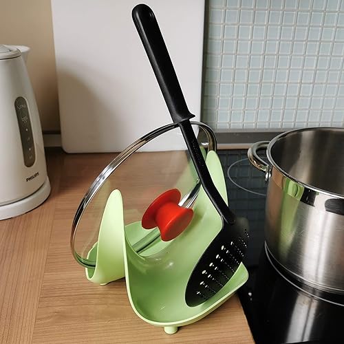 Berossi Support de Couvercle pour Couvercle de Casserole Support de Couvercle pour ustensiles de Cuisine pour cuillère de Cuisine Support avec Fonction de Rangement pour Couvercle et ustensiles Vert