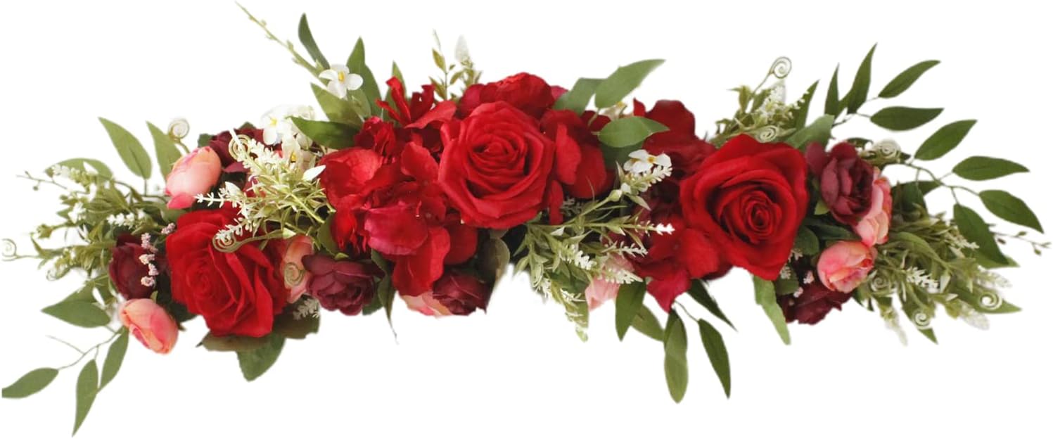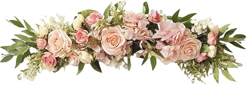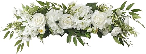 MISNODE Fleurs d'arche de mariage de 65 cm, pivoines artificielles en soie synthétique avec feuilles, décoration de porte d'entrée Linteau, blanc