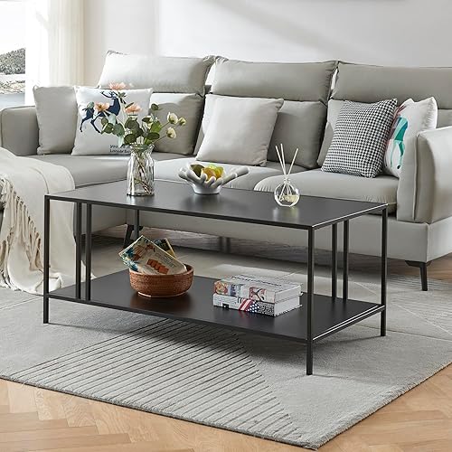 [en.casa] Table Basse de Salon Style Industriel Table d'Appoint Design avec Espace de Rangement pour Salle de Séjour Chambre Bureau Métal 40 x 110 x 55 cm Noir