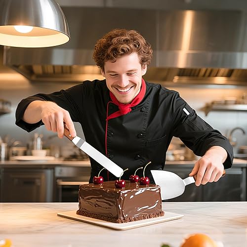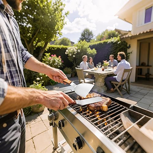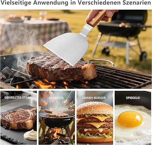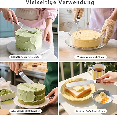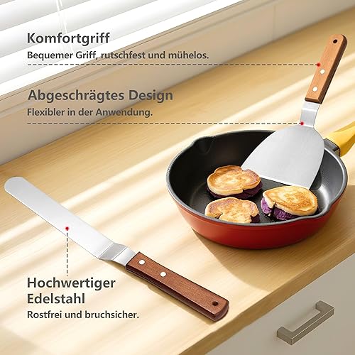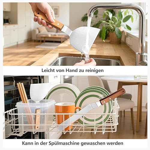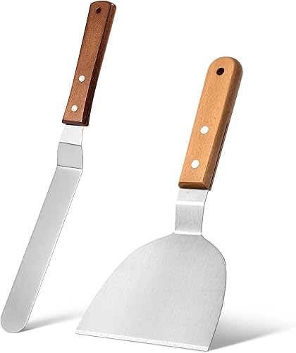 Ensemble de Spatules en Acier Inoxydable, Spatule à Steak de 10 Pouces et Spatule à Crème de 8 Pouces avec Poignées en Bois, Cuisine Polyvalents pour Cuisson, Grillades et Décoration de Gâteaux