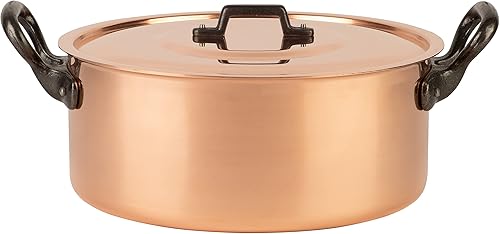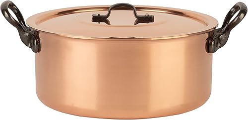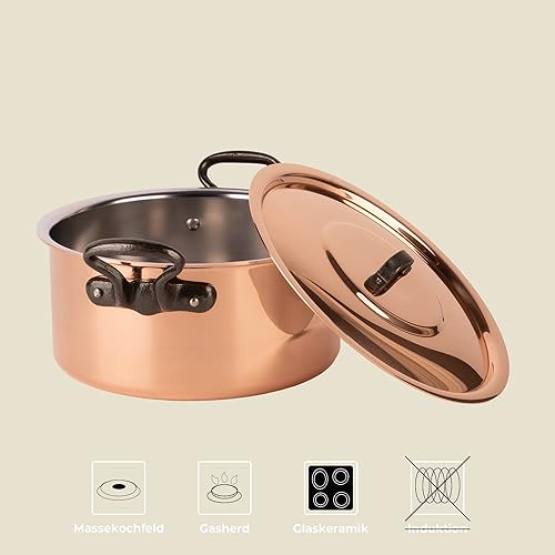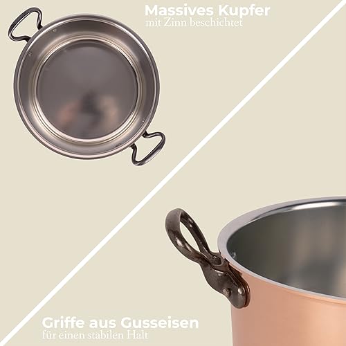 Cuisine Romefort Marmite en cuivre étamé avec poignée en fonte et couvercle Ø 20 cm | Cocotte traditionnelle en cuivre massif | Marmite française idéale pour les soupes et les ragoûts (20 cm)