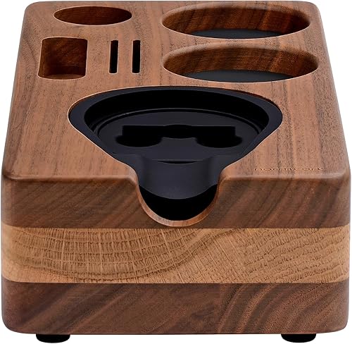 Normcore Station de tassage pour expresso, station de tamponnage en noyer américain naturel, support de base pour porte-filtre, tamper et distributeur de 51 mm, 54 mm, accessoires de barista