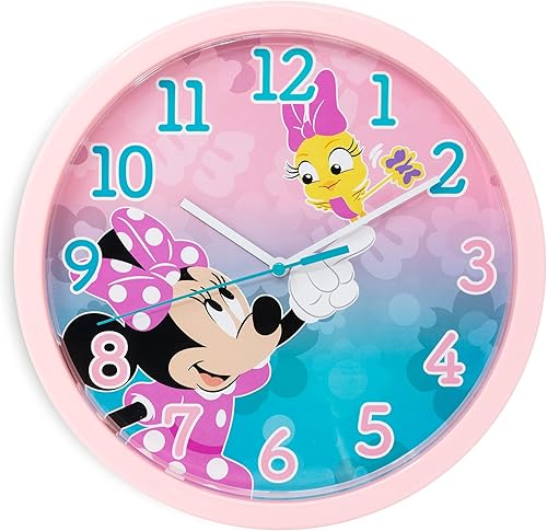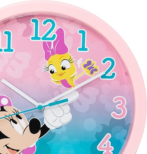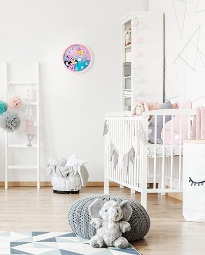 damaloo Horloge Murale Minnie Enfant 24cm diamètre - Horloge Chambre d'enfant pour Apprendre a Lire l'heure - Horloge Murale décorative garçons et Filles - Horloge Enfant d'apprentissage