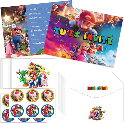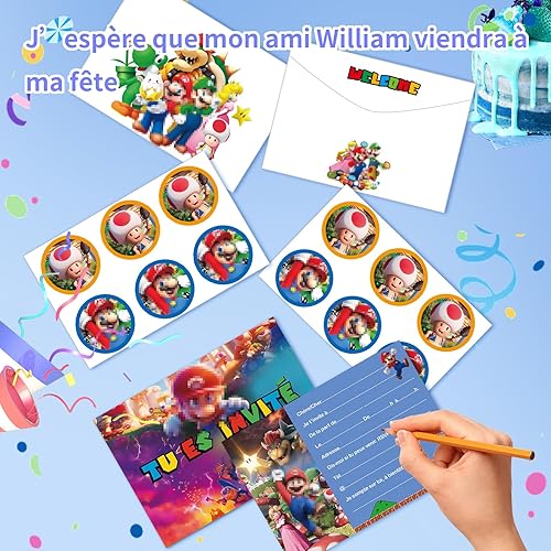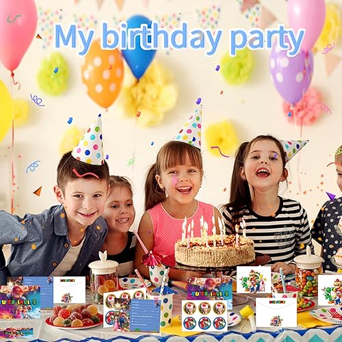 RASMADHUR Carte Invitation Anniversaire Enfant,12 Francais Carte Invitation+12 Enveloppes+12 Autocollants,Invitation pour Anniversaire,Invitation Anniversaire Garcon/Fille,Soirée,Bal