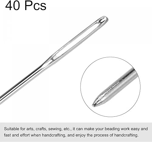 sourcing map Aiguilles longues droites à coudre broderie perles aiguilles acier inoxydable acier 3,94 Pouces 40Pcs
