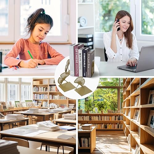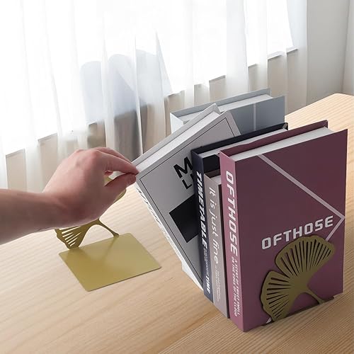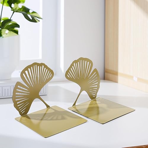Demarsen 2 Pcs Serre Livres en Métal,12.5 x 12.5 x 12.5cm Ginkgo Presse Livre Metal,Séparateur de Livres Creux Décoratifs pour Bureaux Écoles Salons Librairie et Bibliothèque