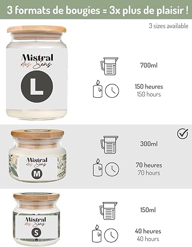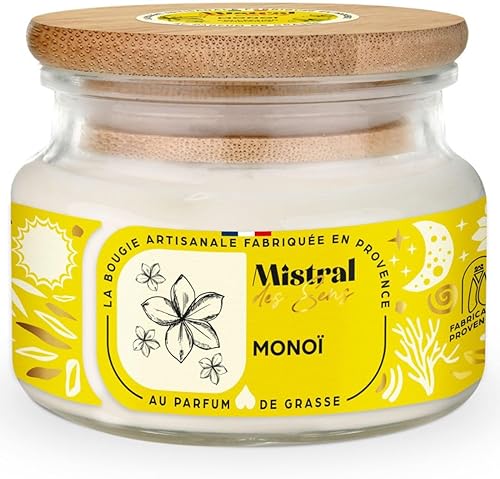 Mistral des Sens Bougie Parfumée Artisanale Monoï 70 Heures 300ml
