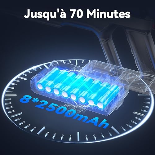 Sulean X8 Aspirateur Balai sans Fil, 48Kpa/580W/70Min Aspirateur sans Fil Puissant avec Écran Intelligent, Anti-Emmêlement, 1,6L Capacité Aspirateur Balai pour Tapis, Sols Durs et Poils d'animaux