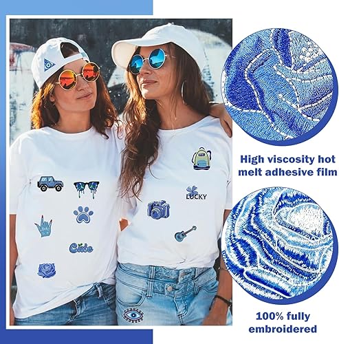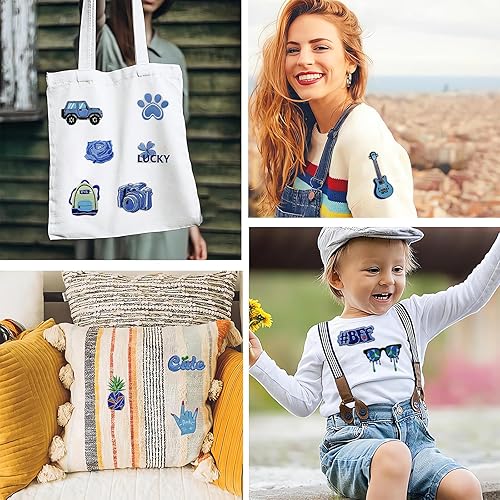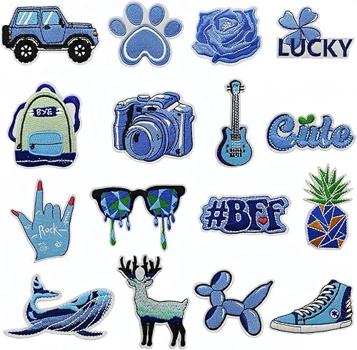 16 Patch Vetement Patchs pour Vêtements Appliques de Bleu écusson Thermocollant à Fleurs Décoratifs à Faire Soi-même pour Vêtements, Sacs et T-shirts