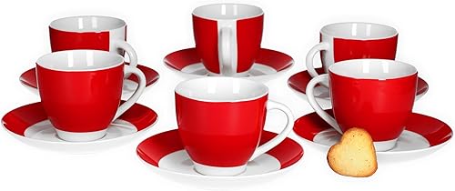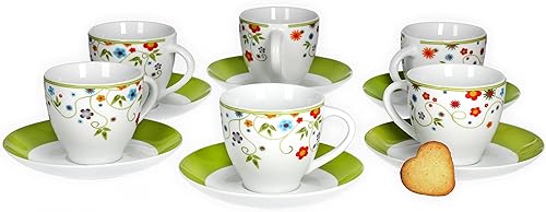Van Well Lot de 6 tasses à café avec soucoupes série Vario en porcelaine - Couleur au choix - Couleur : fleurs