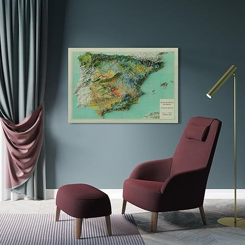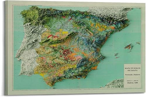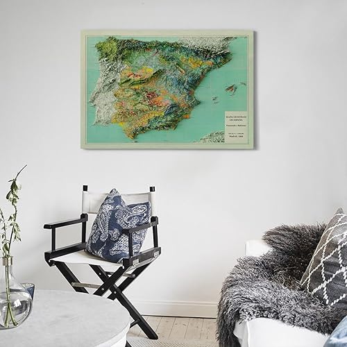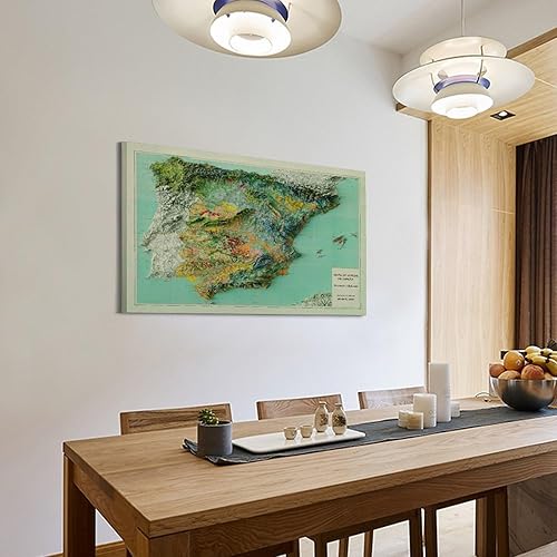 UNSGA Poster de carte d'Espagne vintage en relief - Impression sur toile - Décoration murale moderne pour chambre à coucher - 60 x 90 cm