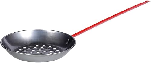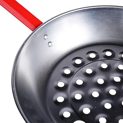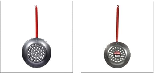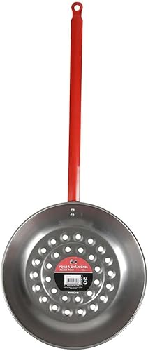 RUECAB - Poêle à châtaignes en acier - Poêle perforée pour garantir une cuisson parfaite des châtaignes - Ø 28,5cm - Longueur: 68cm - Poids: 0.5kg - Longueur du manche: 30cm - Couleur manche: rouge