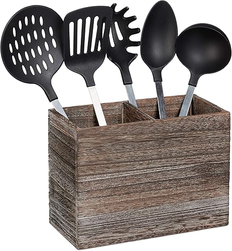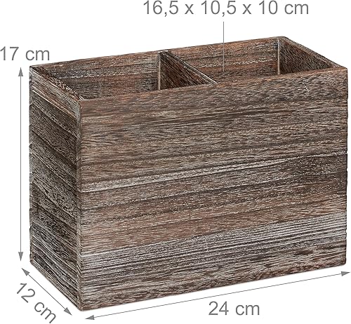 Relaxdays Support à ustensiles de cuisine, 2 compartiments pour les accessoires & couverts, 17x24x12 cm, bois, marron