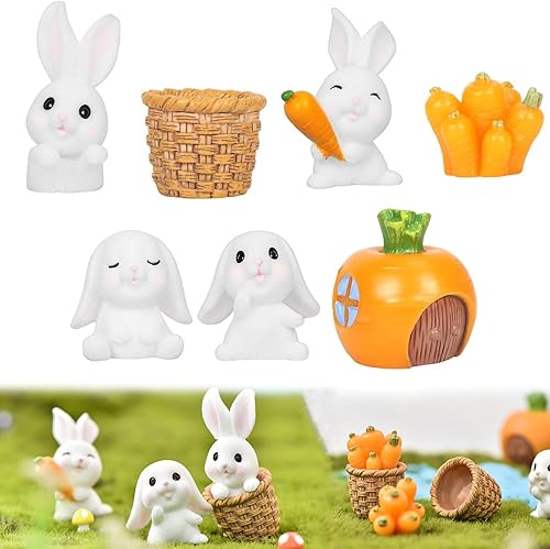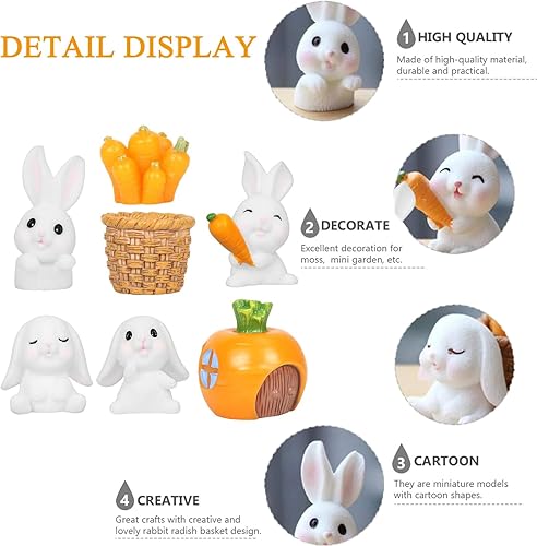 Mini Figurines de Lapin,Miniature Lapin Ornement Figurine,Résine Miniature Lapin Ornement,Décorations de Lapin de Pâques,Carotte en Résine Dessin Animé Décoration Table pour Fée Jardin Paysage Pâque