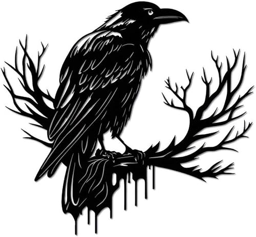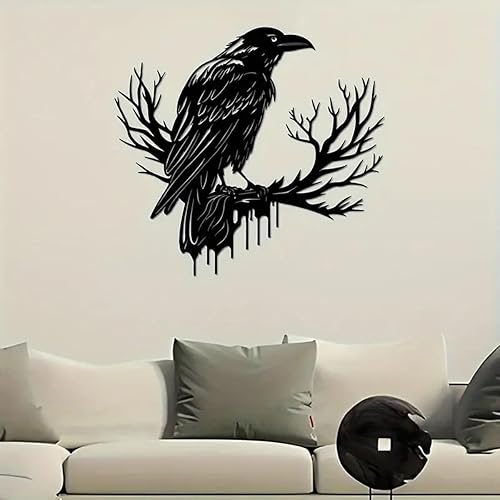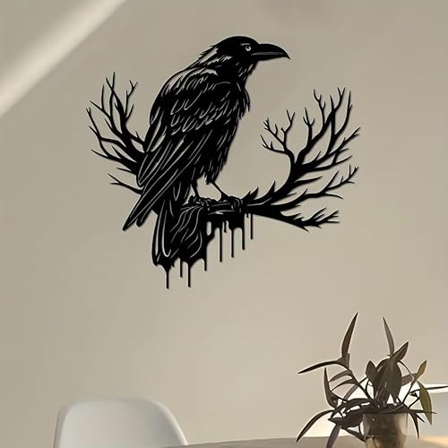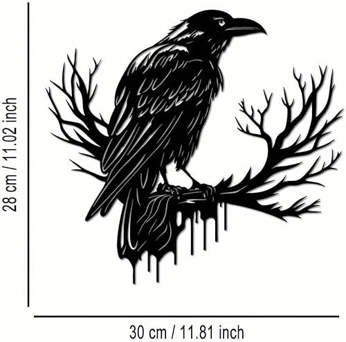 JRBNIT Décoration Murale en Métal Représentant Un Corbeau, Silhouette d'animal Minimaliste, Sculpture Murale Noire Suspendue, Décoration Murale for Salon Et Chambre(30 * 28cm/11.81 * 11.02in)