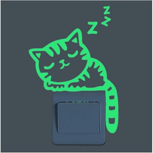 Pulabo Sticker mural lumineux en forme de chat mignon pour interrupteur de salle de bain ou chambre à coucher Fluorescent Stickers pratiques et populaires créatifs