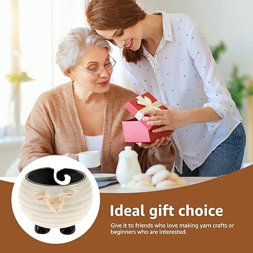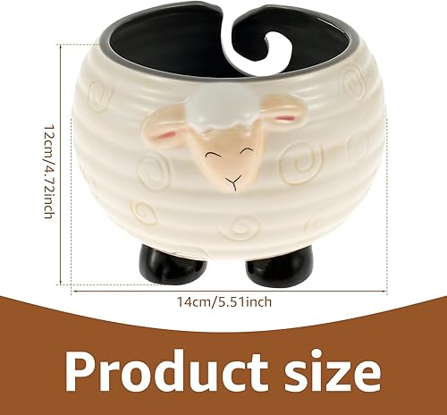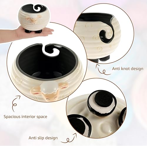 Bols de fil en céramique pour crochet, tricot et pelote de fil fait à la main - Bol de rangement portable pour fil à tisser - 14 x 12 cm