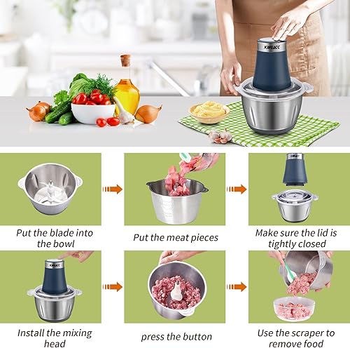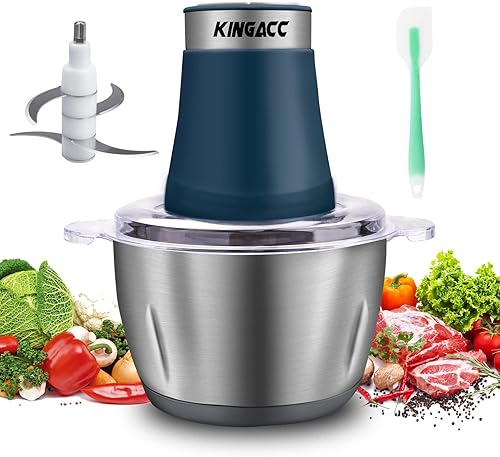 Hachoir Électrique 300W, KingAcc Mini Hachoir a Viande Electrique 2 L avec 4 Lames en Inox,2 Niveaux de Vitesse, Petit Mixeur Pour Viande,Légumes,Oignon,Fruit,Aliments Bébé