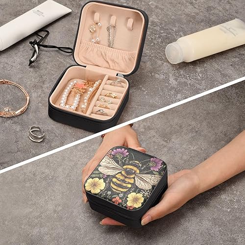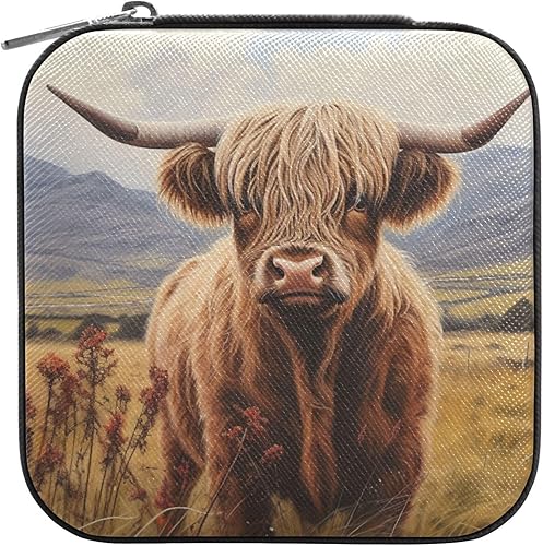 ALAZA Boîte à bijoux pour femmes et filles, jolie vache des Highlands - Petite boîte de rangement portable en cuir synthétique pour bagues, boucles d'oreilles, colliers, cadeaux - Noir