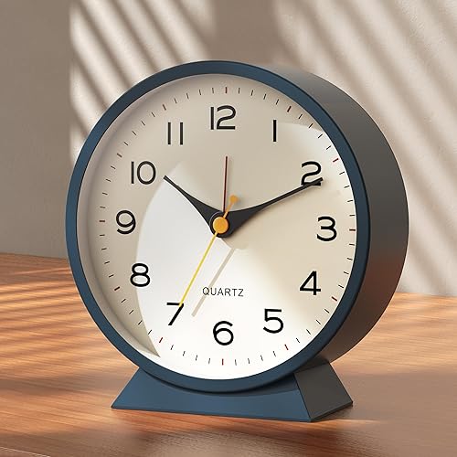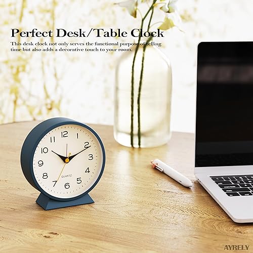 AYRELY® Réveil analogique de table en métal avec lumière, style rétro, fonctionnement sur pile, silencieux, pour décoration de salon, chambre, chevet, petite taille, 11,4 cm (bleu)