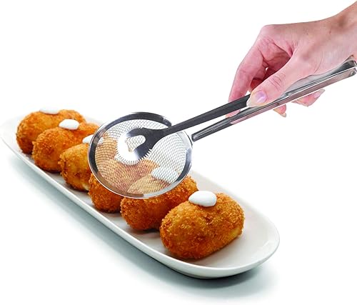 Metaltex 204104010 Pince & Ecumoire à Frire, INOX, Argent, 27 x 27 x 5 cm
