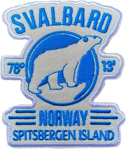 Écusson brodé Svalbard Norvège (8,9 cm) Écusson thermocollant ou à coudre sur l'île Spitzberg Voyage Souvenir Emblème Ours Polaire Blason Sac à dos Cadeau