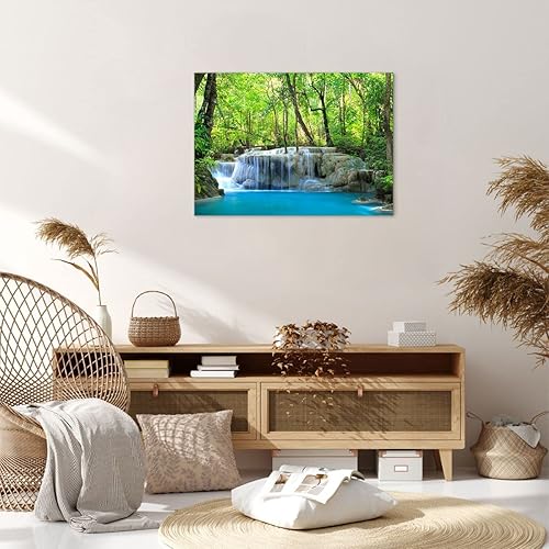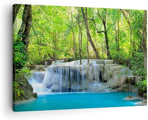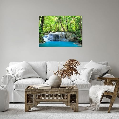 Deco Cadre Décoration Salon Cascade Forêt environnement Moderne Impression sur Toile 120x80cm Image Tableau Decoration Murale Chambre Horizontal Art Wall Tableaux Decoratifs Muraux AA120x80-2664