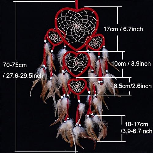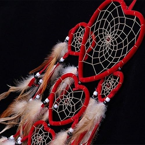 LERTREEUK Attrape-rêves en Forme de cœur avec Plumes pour Voiture Décoration Murale Rouge