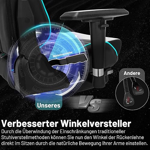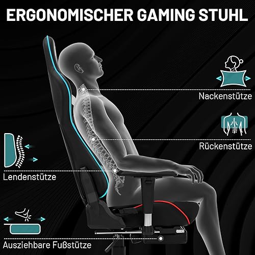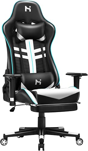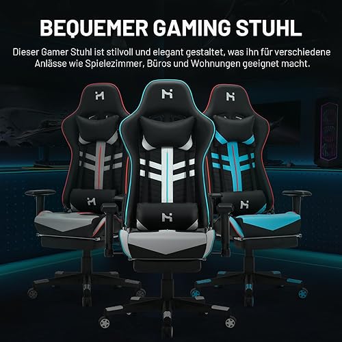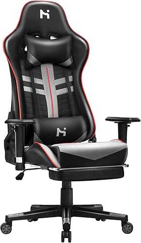 HLONONE Chaise de jeu, ergonomique, avec appui-tête et coussin lombaire réglables, chaise PC, pour jeux et bureau, fauteuil de jeu réglable en hauteur, charge maximale de 150 kg, noir/gris