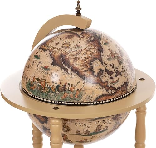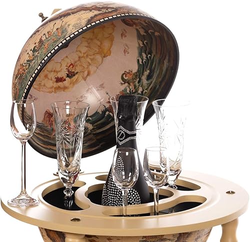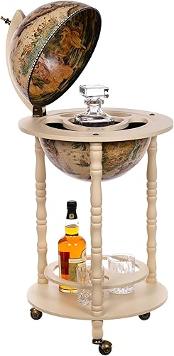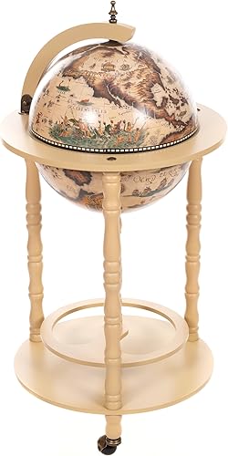Chariot de Bar géant 33001 W avec piliers en Bois d'eucalyptus Massif - Blanc Antique - 100 cm de Haut et 44 cm de Large