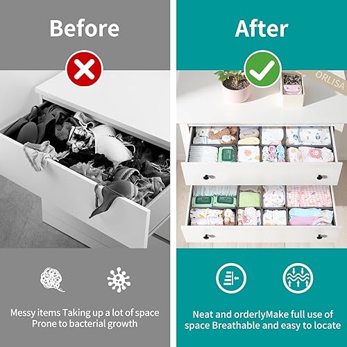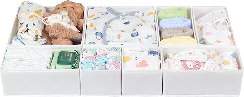 ORLISA Organisateur de tiroir pour vêtements et commode pour chambre d'enfant, organiseur et rangement de vêtements de bébé et organisateur de tiroir de commode, pliable et lavable, blanc
