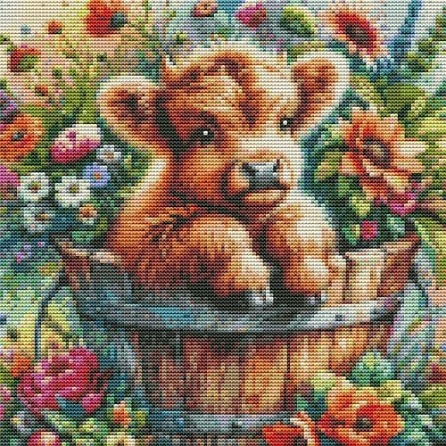 Abillyn Kit de broderie au point de croix mignon petit tigre estampillé avec motif imprimé (tigre)
