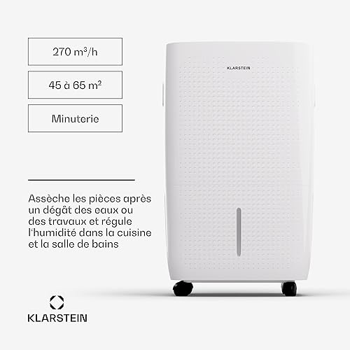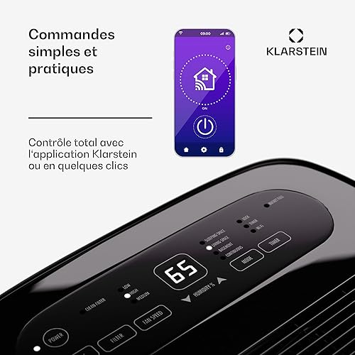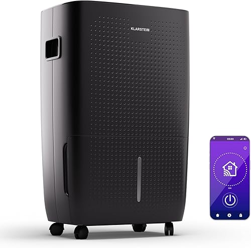 Klarstein DryFy Grand Smart 70L déshumidificateur d'air, WiFi, minuterie 24h, réservoir 8 L, anti-moisissure, portable, déshumidificateur électrique pour cave & pièces 60-90 m²