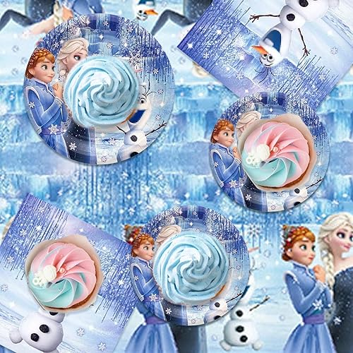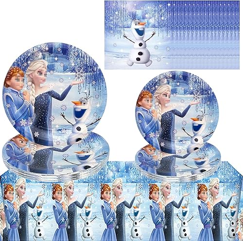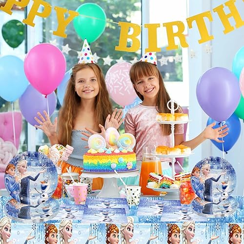 Décoration D'Anniversaire Fille Hiver, 41 Pièces Vaisselle De Fête D'Anniversaire D'Enfant, Fournitures De Table Avec Nappe Et Serviettes, Décoration D'Anniversaire Pour Fille
