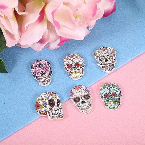 Boutons tête de mort 50 pièces, bouton de forme de tête de mort de couleur mélangée, accessoires vestimentaires, pour bricolage couture artisanat décoratif(Mixte 2)