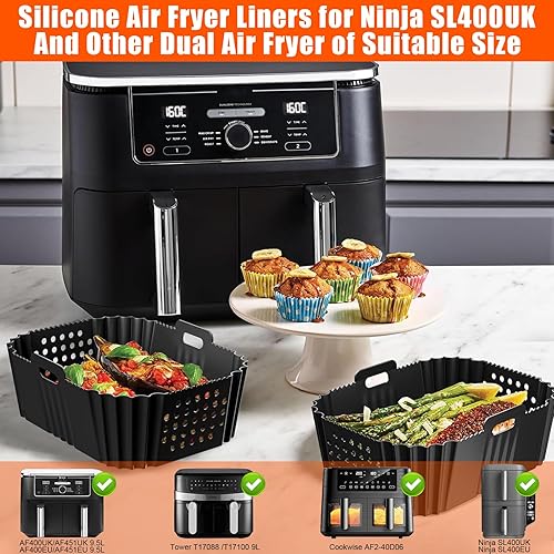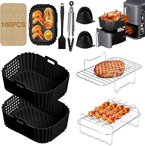 BUOAZR Moule Silicone Air Fryer pour Ninja Double Stack SL400EU, 11 Pièces Silicone Accessoires Air Fryer pour Foodi Max Dual Zone 9.5l AF400EU, AF300EU 7.5L, Réutilisable, Friteuse Sans Huile