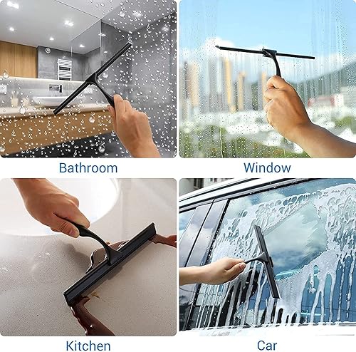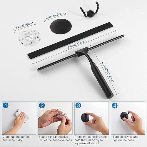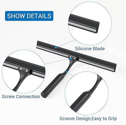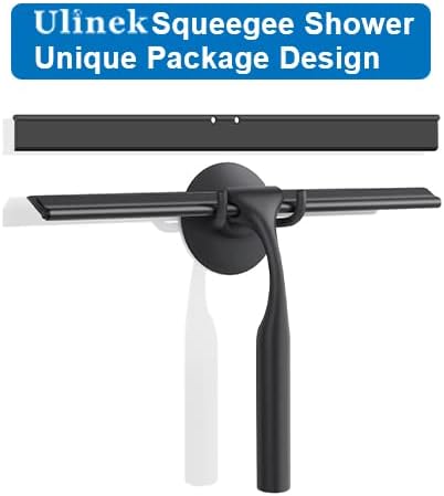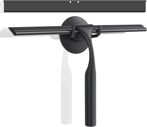 Ulinek Raclette de Douche Vitre avec Support Mural, Raclette de Vitre 25cm pour Salle de Bain avec Lame en Silicone, Raclette Nettoyage Professionnel Fenêtre Voiture Verre Miroir,Noir