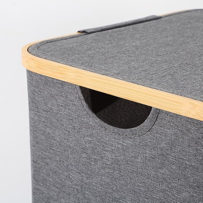 Panier à Linge avec Couvercle,40L Corbeille à Linge avec Poignées en Bambou, Bac a Linge Laundry Basket Pliable,Gris,20241204