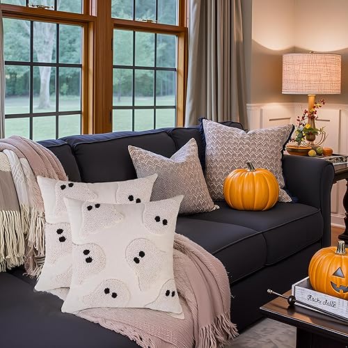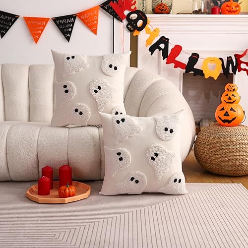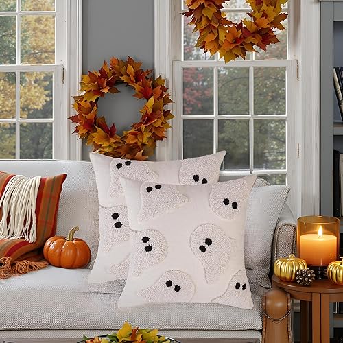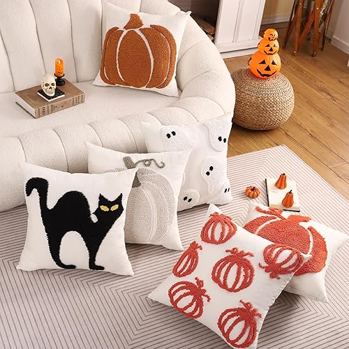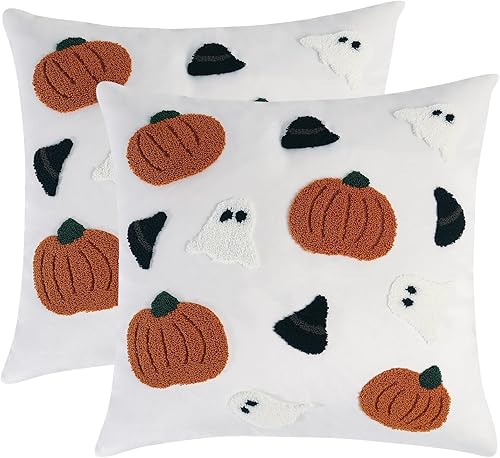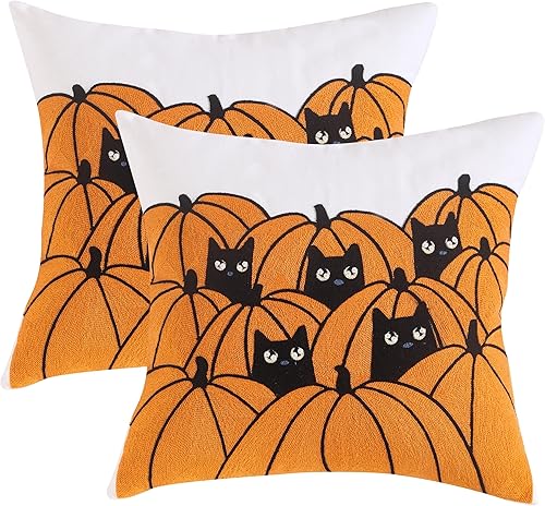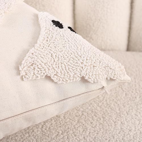 Tosleo Housse de Coussin Halloween 45 x 45 cm Taie d'oreiller Chauve Souris de Tufté de Lin pour Canapé Salon Jardin Maison Extérieur Halloween Décoration 2 Pièces