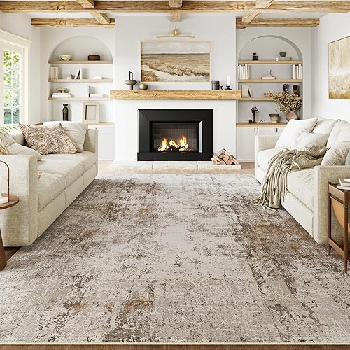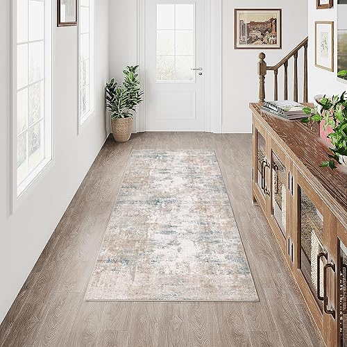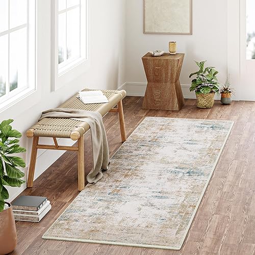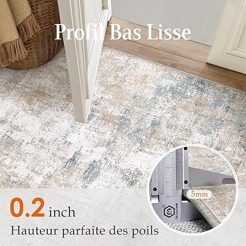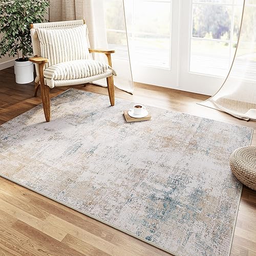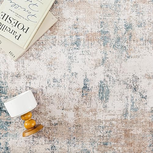 HUGEAR Beige Bleu Tapis Salon 180x270cm Lavable en Machine Antidérapant Grand Tapis Chambre Adulte Moderne Naturel Abstrait Carpet Salle a Manger Bureau Descente de Lit Interieur Doux Poil Ras Rug