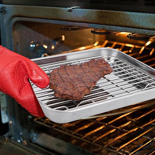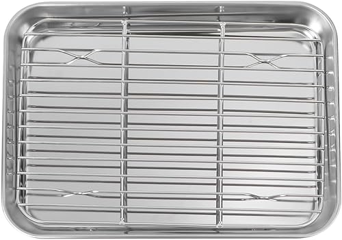 Homoyoyo Plaque Japonaise De Cuisson En Acier Inoxydable Avec Grille De Refroidissement Amovible Pour Reposer La Viande - 2 Plaques Rectangulaires 23 x 17 x 2.5 Cm
