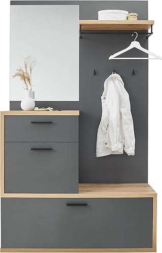Stella Trading LOUIS Vestiaire d'entrée compact gris foncé - Vestiaire compact stylé avec miroir pour votre entrée - 115 x 198 x 38 cm (L/H/P)